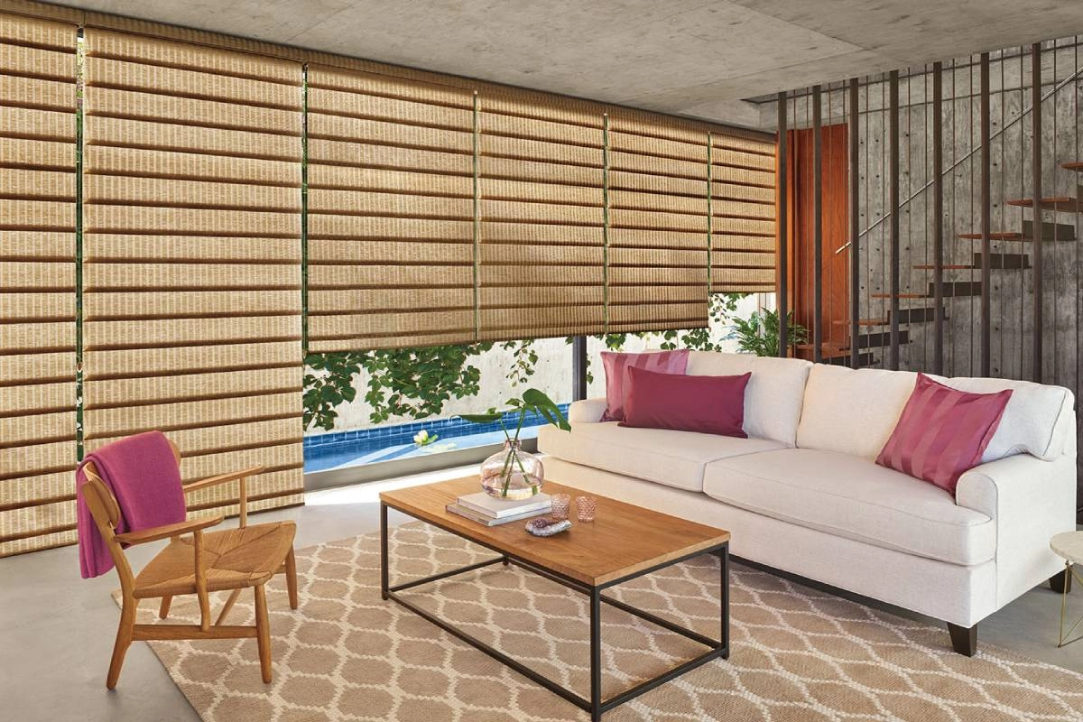 Some of our favorite products that we recommend are our Hunter Douglas Roman Shades because of their timeless versatility and classic beauty. Roman shades feature one length of fabric that folds neat or opens up for full privacy.