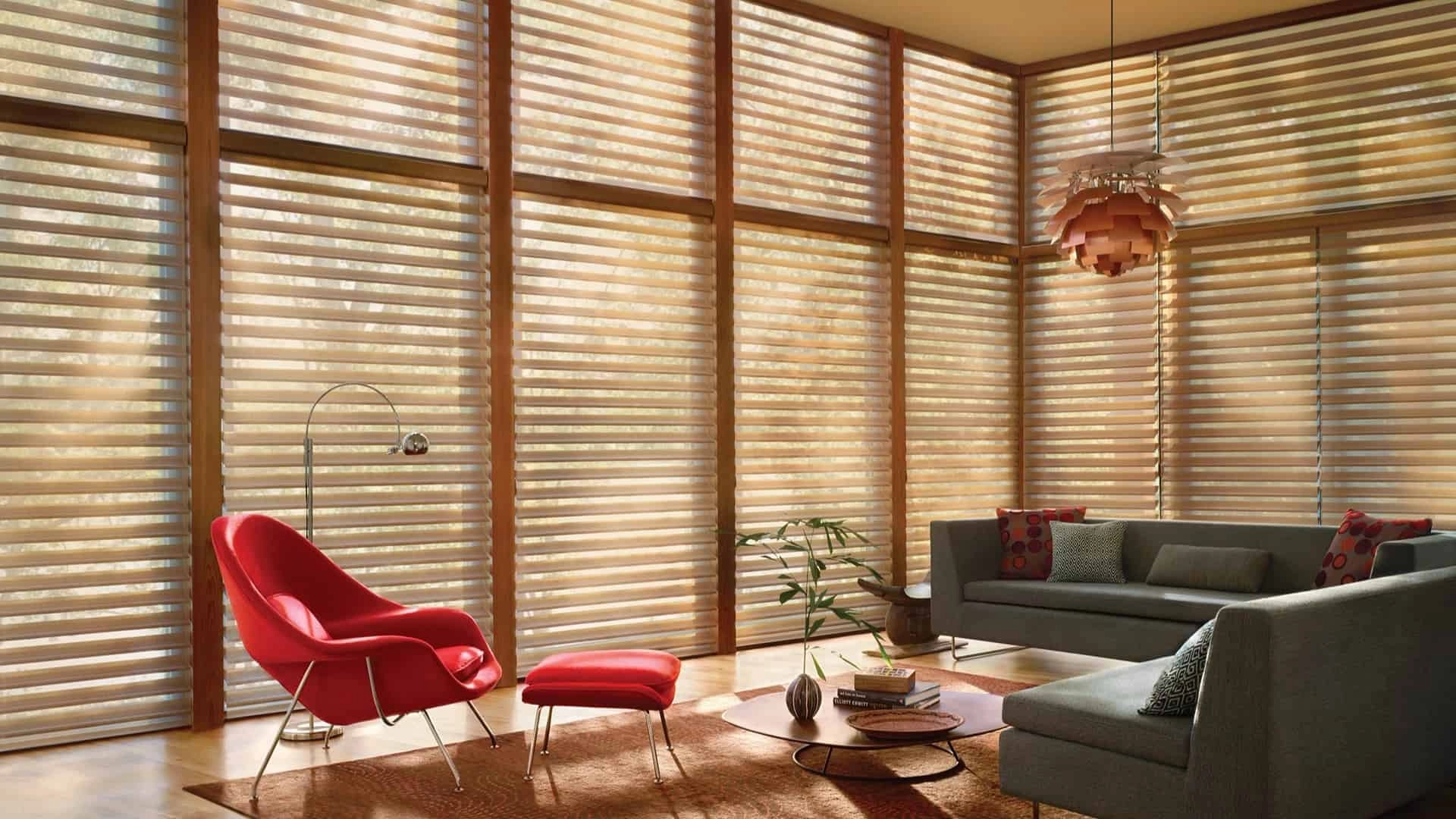 Silhouette® Sheer shades are the perfect option for any living room. These sheer shades are best known for their S-shaped fabric vanes that float between sheers.