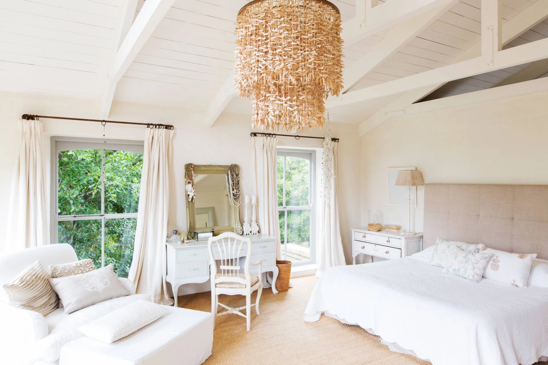 When it comes to bedroom window treatments for farmhouse designs, selecting styles with ample light control, privacy, and rustic elegance is an easy way to tie the room together.